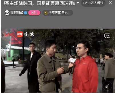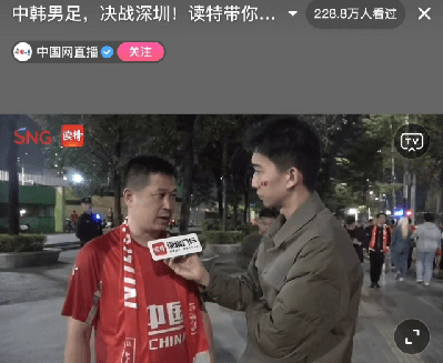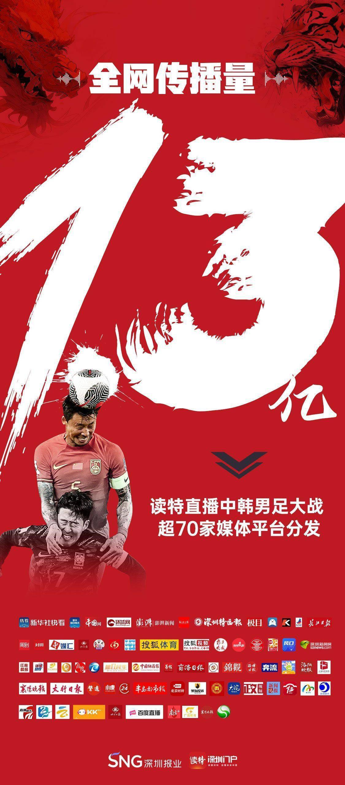 足球直播- NBA直播- 世界杯专业赛事超清Live全网传播量13亿!读特中韩男足大战燃爆网络