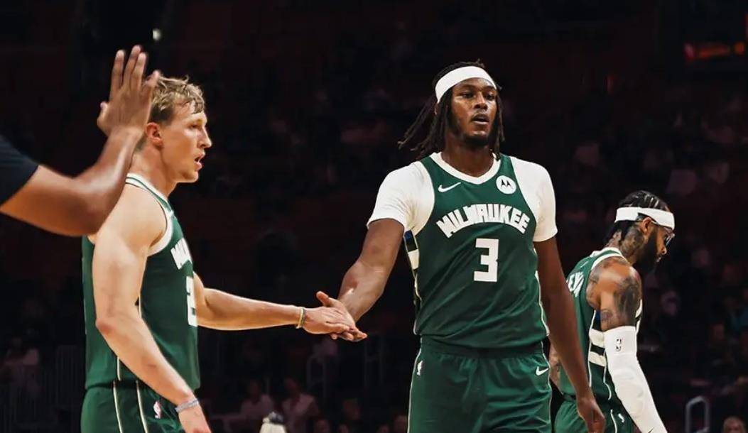紧跟着,晚上9点30分,CCTV5直播了那场NBA焦点战,雄鹿客场挑战热火。 第一节雄鹿就反客为主,靠高压防守打了波12-3,首节结束30-23领先。 热火第二节靠鲍威尔的两记三分一度反超,但半场还是51-49落后。 第三节最戏剧,热火约维奇突然爆发,传球、突破、补篮全包办,带队反超8分。 可末节雄鹿的“死亡小阵”一摆出来,南斯、特伦特和罗林斯连着扔进三分,直接一波流带走比赛。 热火韦尔最后1分30秒还在拼命投三分,但比分早就定格在103-93了。