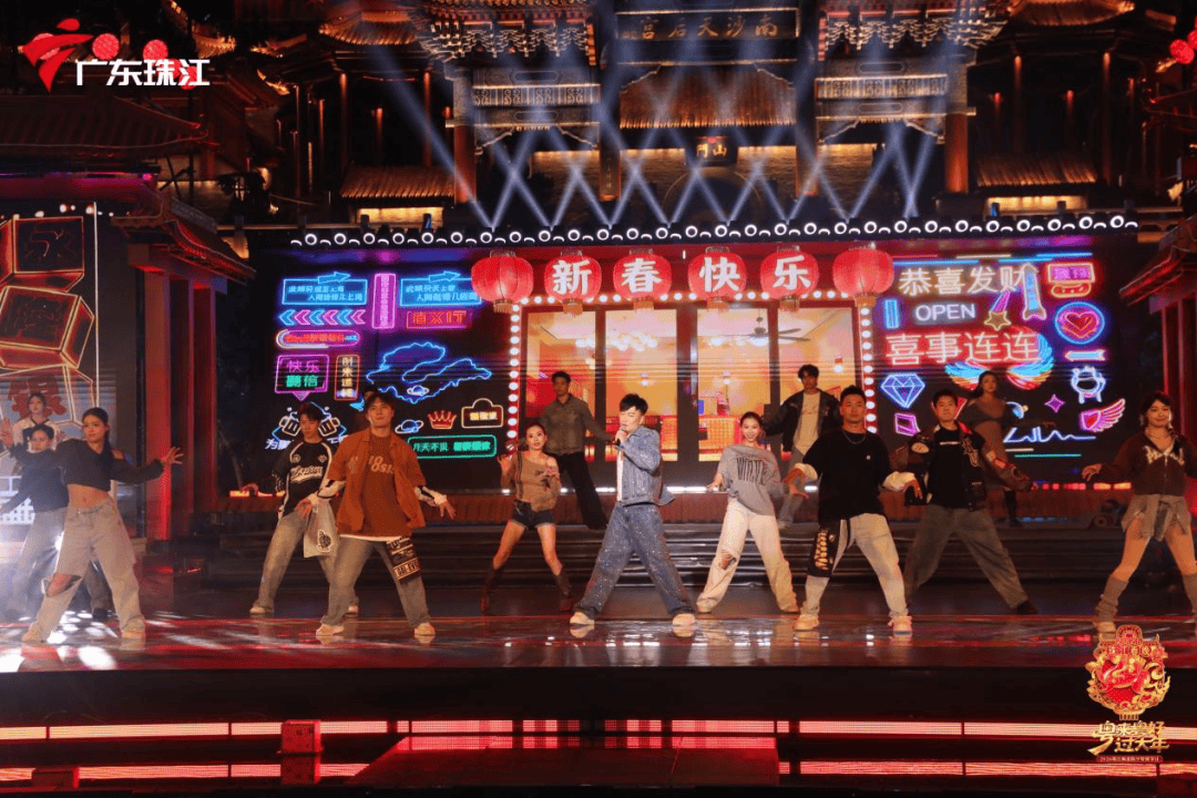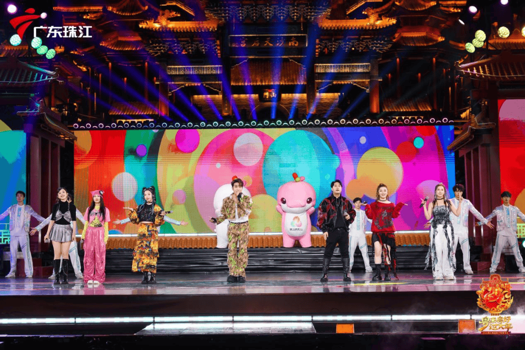 晚会节目形式丰富多样,涵盖开场舞、语言歌舞剧、武侠歌曲舞台秀、小品、歌舞秀、童声合唱、民乐走秀、乐队表演、儿童节目等多个品类。《新岁灯・福满圆》以爷孙对话为引,用粤语童谣串起人生不同阶段,唤起观众童年记忆;《湾区烟火》《一起走过的日子》等经典歌曲接力演唱,打造集体回忆杀;而跨年环节的无人机秀与《金马奔腾贺新春》《新年这一刻》等欢歌热舞,更是将新春氛围推至高潮,台上台下联动的《勇往直前》,将足球赛场的热血与激情搬进晚会,实现情感共振。