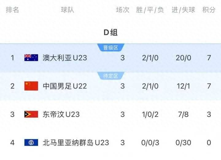 2025-09-12足球直播,欧洲杯直播,体育直播,球客直播,雷速体育,篮球直播,风驰直播,NBA直播,英超直播,足球比分,足球赛事,意甲,欧冠,世界杯,世界杯直播,村超,贵州村超,波胆,角球,串球,大小球U23亚洲杯预选赛D组最后一轮比赛中,U22中国队主场0-0战平澳大利亚U22队,三场比赛取得2胜1平积7分、收获11个净胜球,凭借净胜球优势锁定“成绩最好的小组第二”身份,成功晋级2026年U23亚洲杯正赛。而澳大利亚则以20个净胜球位列小组第一,也顺利晋级。