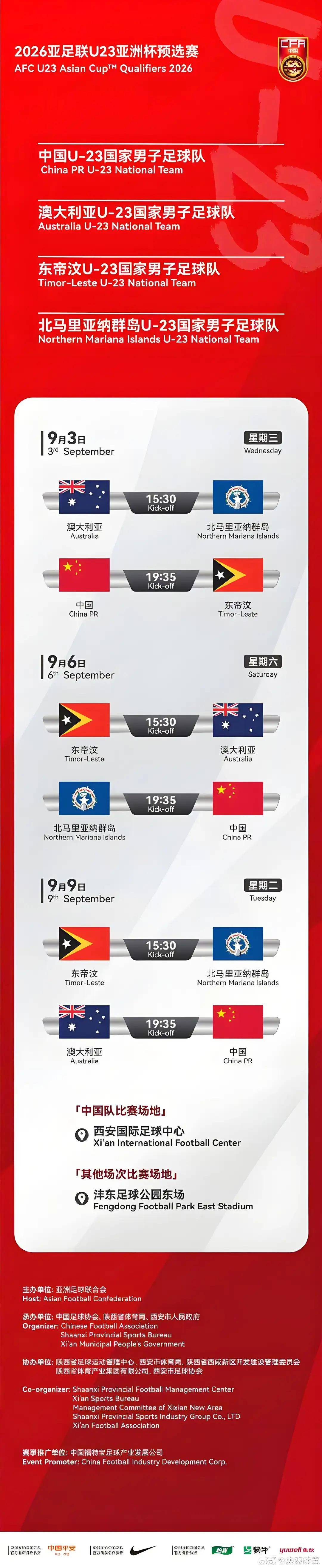 2025-09-12足球直播,欧洲杯直播,体育直播,球客直播,雷速体育,篮球直播,风驰直播,NBA直播,英超直播,足球比分,足球赛事,意甲,欧冠,世界杯,世界杯直播,村超,贵州村超,波胆,角球,串球,大小球中国男足U23即将在西安国际足球中心迎来U23亚洲杯预选赛D组第二轮的关键战役,对手是实力较弱的北马里亚纳群岛队。比赛将于19点35分准时打响,值得注意的是,本场赛事转播平台仍为CCTV5,与首轮相同,球迷们需留意避免错过这场重要对决。