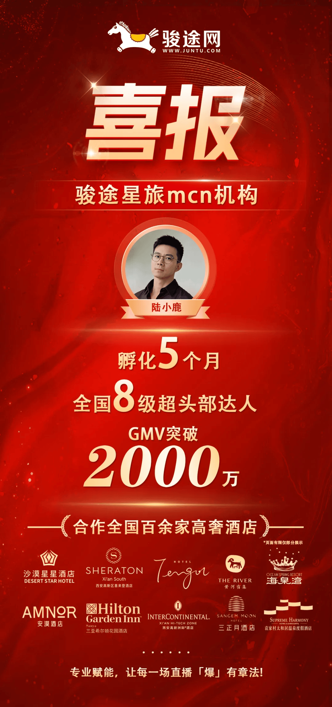 骏途星旅MCN机构继续大放异彩,达播矩阵包括陆小鹿、咚东出发、张大人cheers等成绩斐然,达播账号全面开花,重点孵化账号“陆小鹿”更是表现惊艳,孵化5个月已成为8级(顶级)超头,旗下孵化的账号矩阵总GMV更突破8000万元,彰显出“MCN+服务商”模式强大的商业变现能力。
