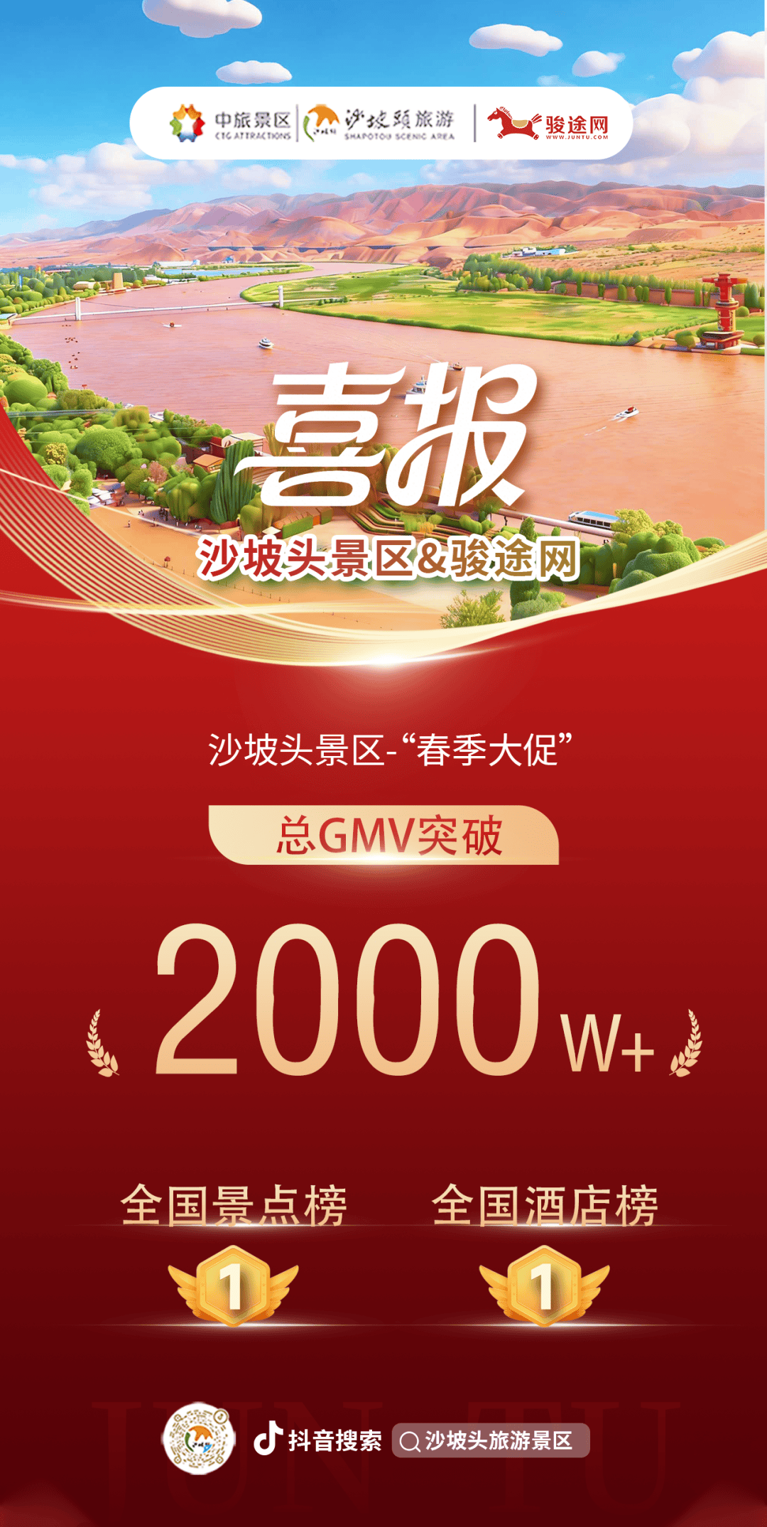春季大促成绩亮眼,沙坡头景区“春季大促”再次实现总GMV突破2000万元的斐然成绩;酒店大促携手西安临潼悦柳酒店、海泉湾温泉世界酒店、安漠酒店、沙漠星星酒店、七号星空帐篷酒店、袁家村太和居温泉度假酒店等多家高品质酒店推出春日特惠产品,累计总GMV达3000万元,同比增长达90%,业务规模与经营业绩持续稳步提升,充分彰显出骏途网强大的产品运营及销售转化能力。