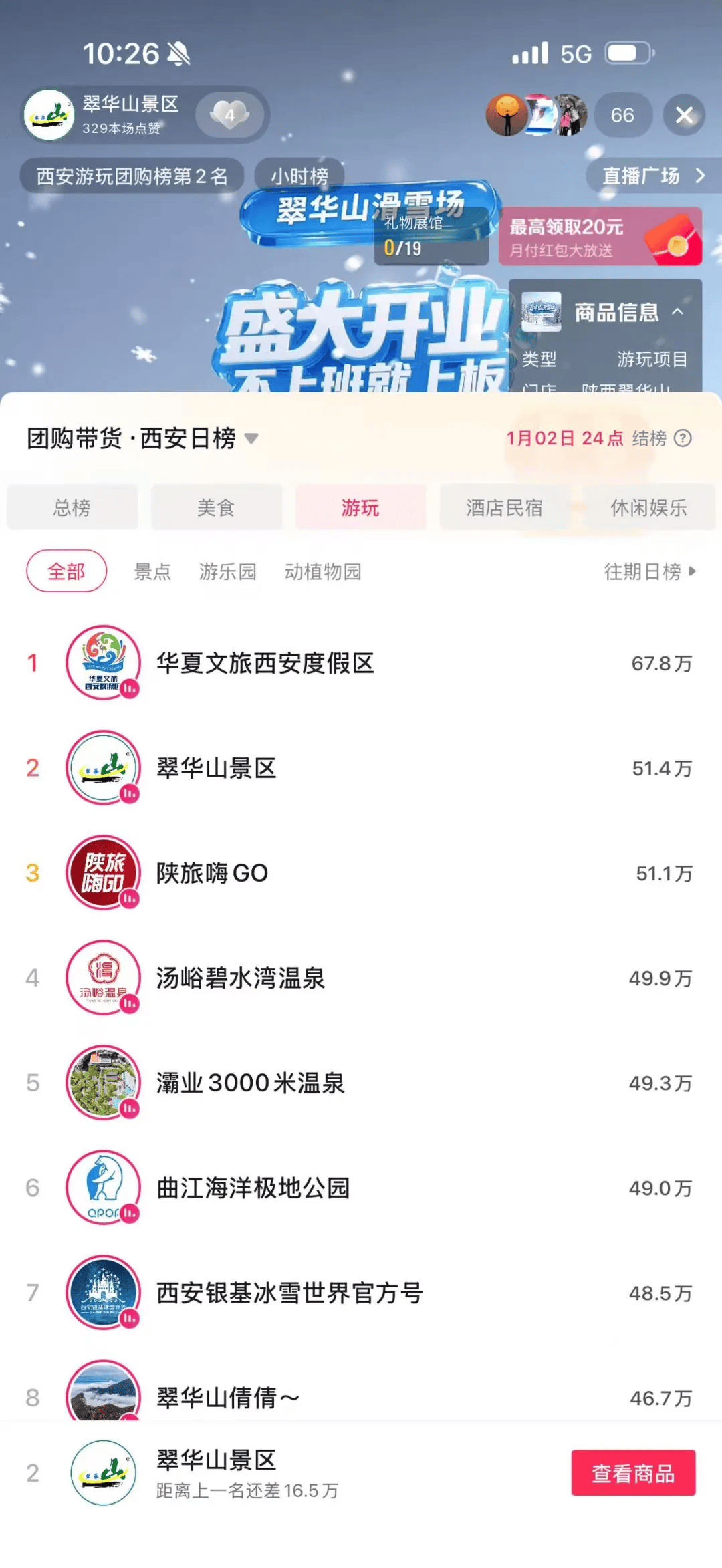 创新采用“官号+达人+职人+全天候日不落+景区景点全覆盖”的营销新模式,立体式、全方位的传播矩阵,直接助力元旦期间翠华山接待人数创历史新高,实现了流量与销量的高效转化。