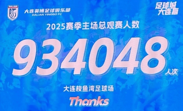 大连英博2025赛季主场总观赛人数达到934048人,这个数字也是中国足坛近年来非常罕见的,今年中国足坛超4万人的足球比赛达到98场,总人数470万人,而大连英博主场观众人数占到20%左右,足以看出大连英博为今年中国足坛球市做出的巨大贡献。