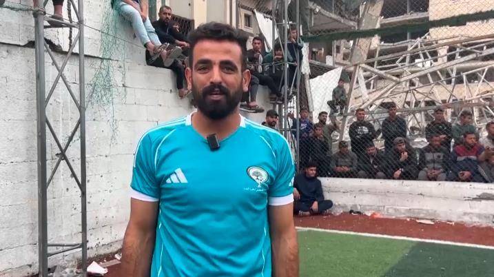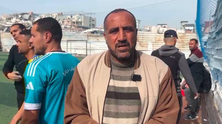 尽管生活如此艰难,我们的人民仍想说:我们要恢复体育活动,哪怕只是通过简单的五人制足球。现在,加沙城和北部只剩下这一块场地了。在汗尤尼斯、拉法和加沙东部的舒贾亚等地,已经没有体育场了,所有那些场地都遭到了破坏。我们目前只能受限在几个幸存的俱乐部场地里踢球。”